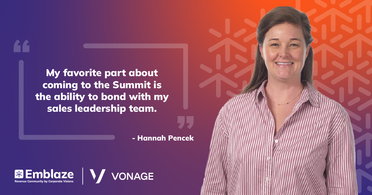 Revenue leaders need community with one another to grow professionally. Whether meeting on a local, national, or global level with fellow Emblaze members, Hannah Pencek from Vonage credits her membership with meaningful long-term relationships and bold new ideas.