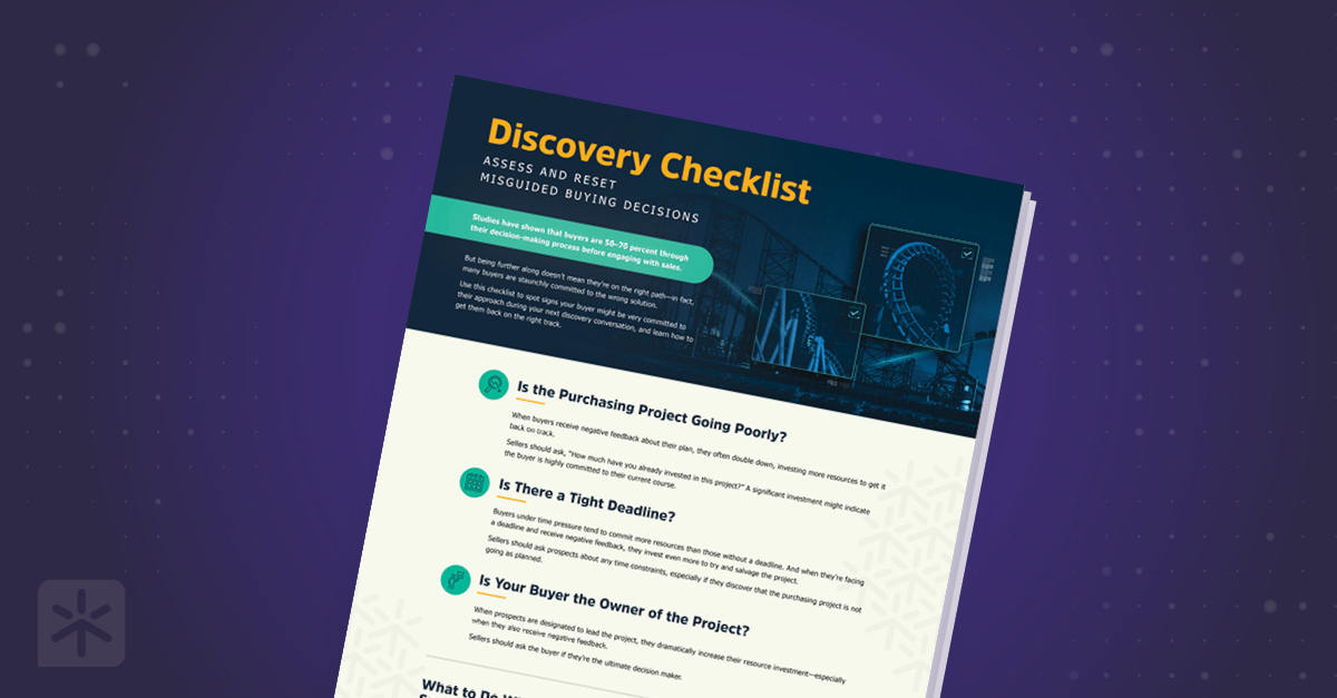 Use this checklist to spot signs your buyer might be overly committed to their approach during your next discovery conversation and learn how to get them back on the right track.