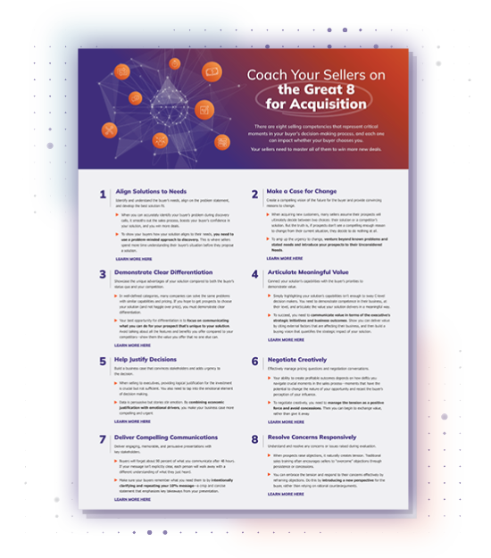 Discover the Great 8 sales skills that matter most to your buyer, and how to coach your sellers on each one.