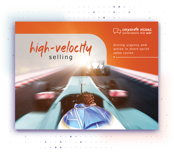 In fast-moving, high-volume sales, sellers need to appeal to the buyer and close the deal in one or two calls. As a result, sellers can get overzealous, pushing and hustling through conversations that require more finesse. These sales happen at a high velocity, but speed doesn’t trump patience and skill. If you don’t take time to understand how your buyers frame value, appeal to their motivations in the moment, and present a differentiated value proposition, you’ll end up becoming just another commodity provider competing on price. How can you accomplish all that in just a few short conversations? In this e-book, you’ll learn research-backed concepts and tactics to motivate buyers to act quickly while fully articulating your value. Get this e-book and discover: